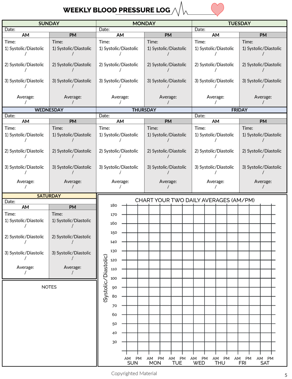 Weekly Blood Pressure Monitoring Log